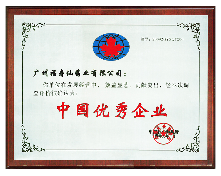 2009年福壽仙企業(yè)被評(píng)為“中國(guó)優(yōu)秀企業(yè)”
